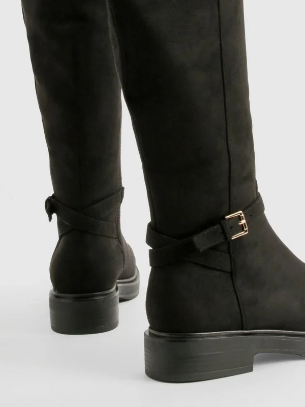 BOOHOO Wide Fit Buckle Detail Knee High Boots