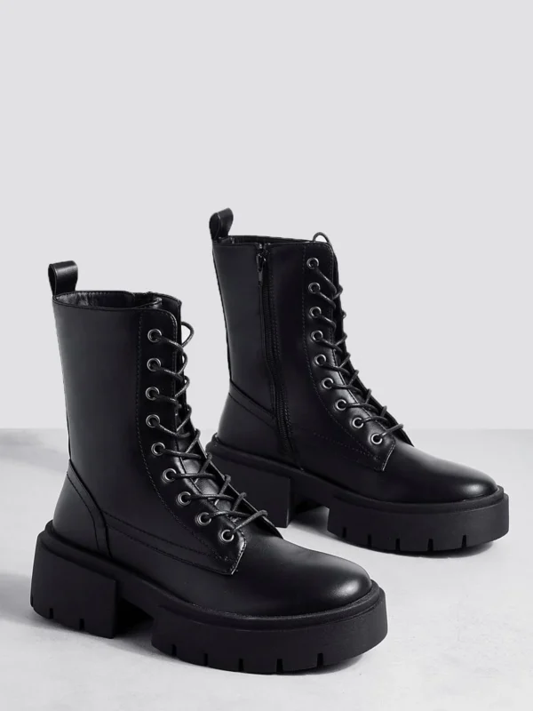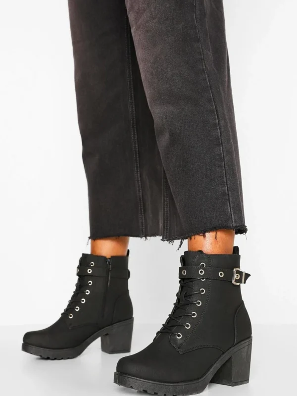 BOOHOO Wide Fit Buckle Lace Up Chunky Hiker Boots