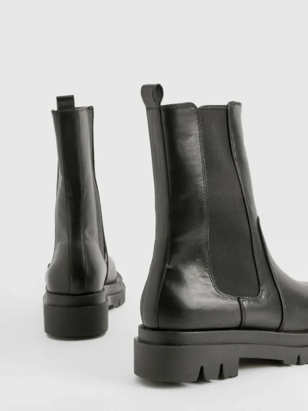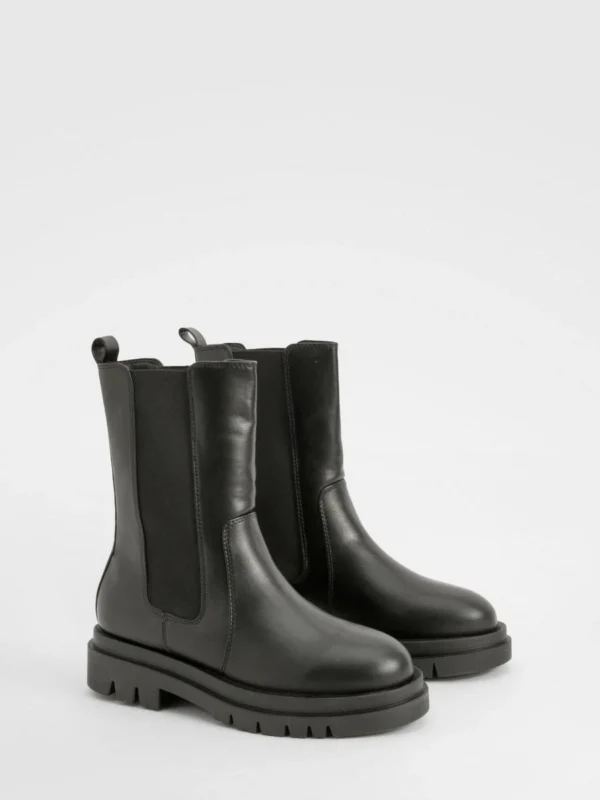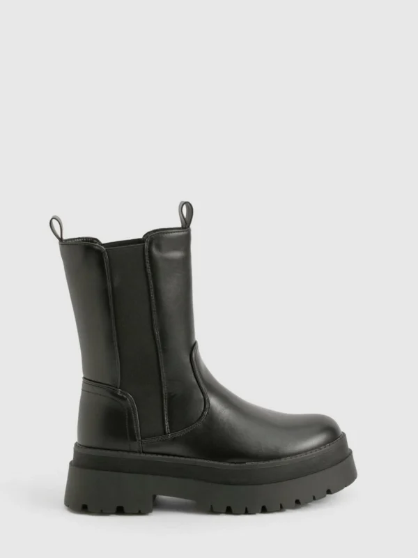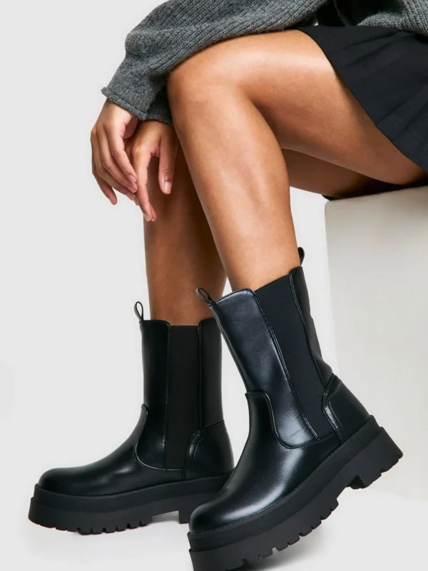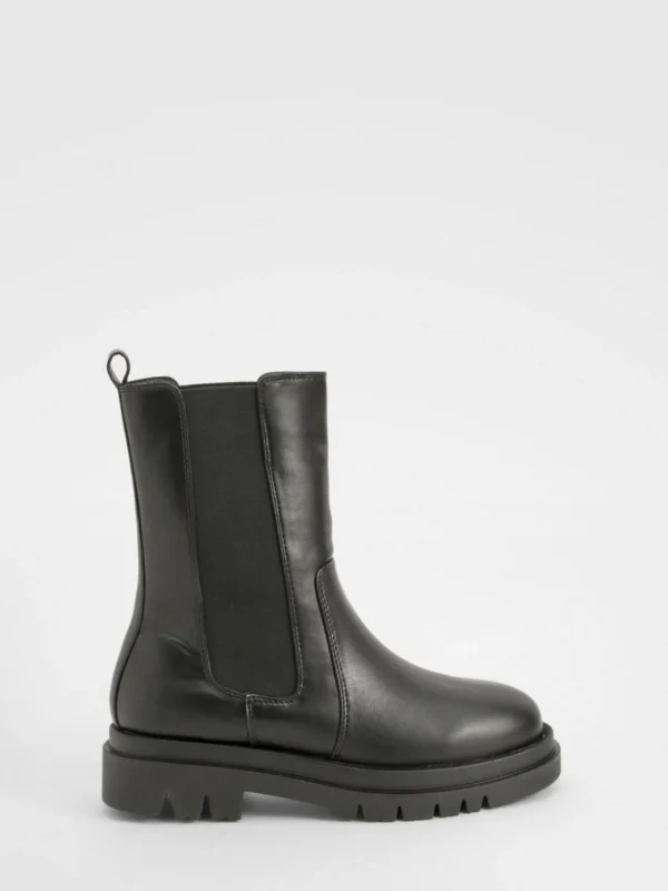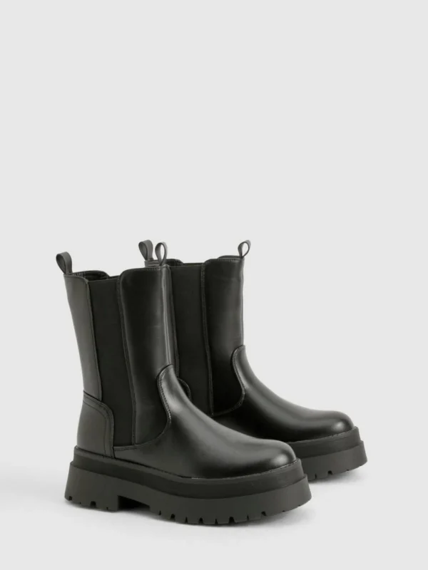 BOOHOO Wide Fit Calf High Chunky Sole Chelsea Boots