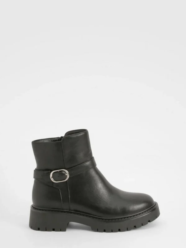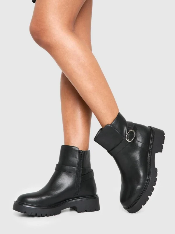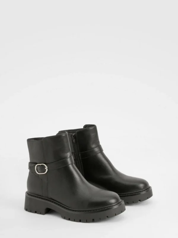 BOOHOO Wide Fit Chunky Buckle Detail Chelsea Boots