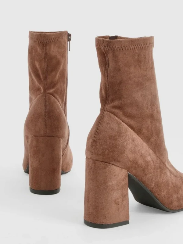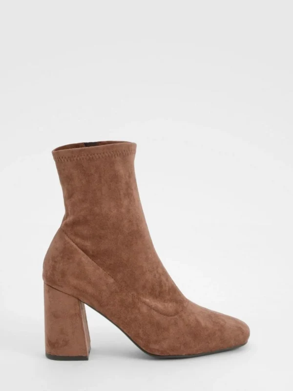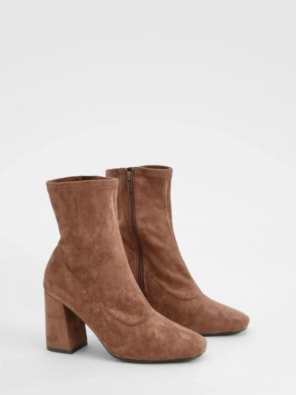 BOOHOO Wide Fit Block Heel Square Toe Sock Boots