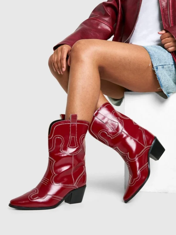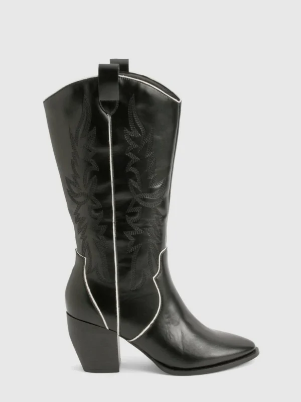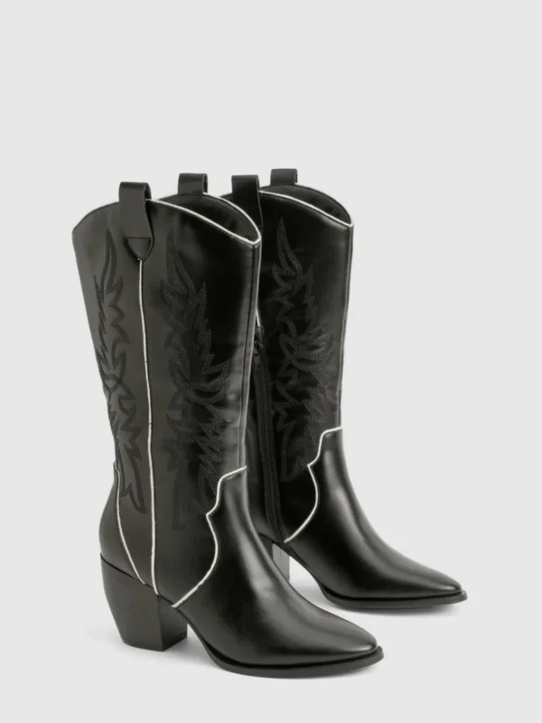 BOOHOO Wide Fit Embroidery Stitch Detail Western Boots