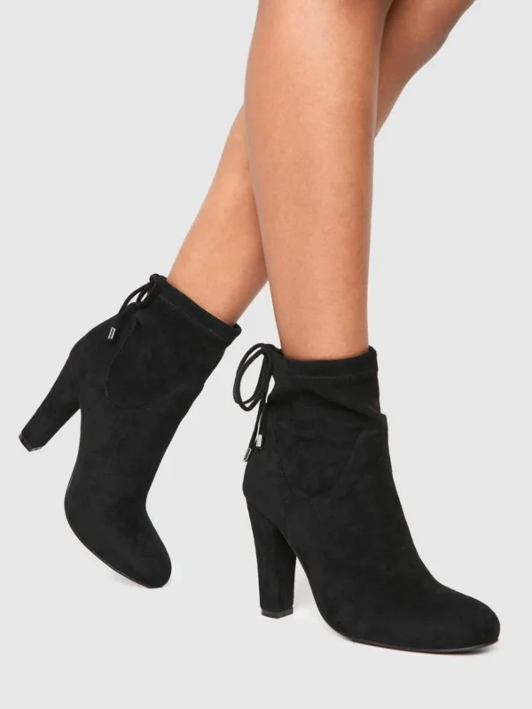 BOOHOO Wide Fit Faux Suede Ankle Detail Block Heeled Boots
