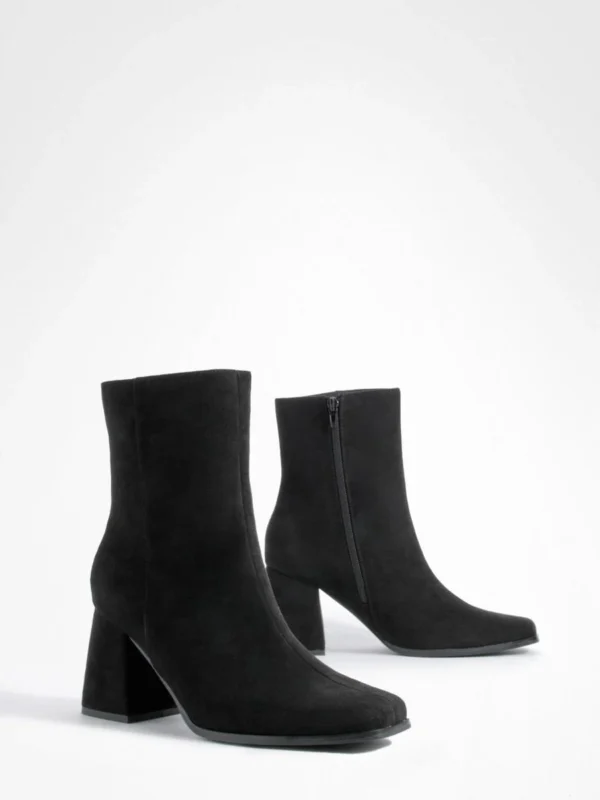 BOOHOO Wide Fit Faux Suede Block Heel Ankle Boots