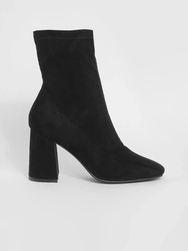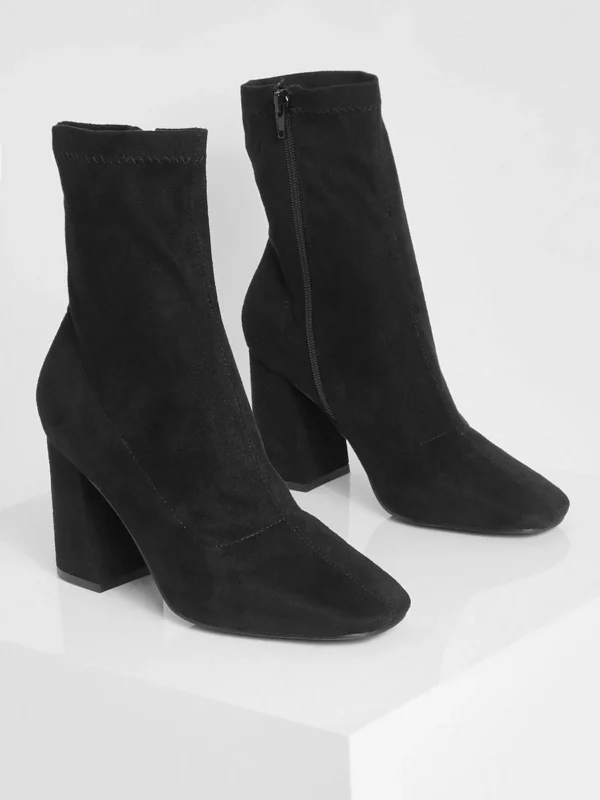 BOOHOO Wide Fit Faux Suede Block Heel Square Toe Sock Boots