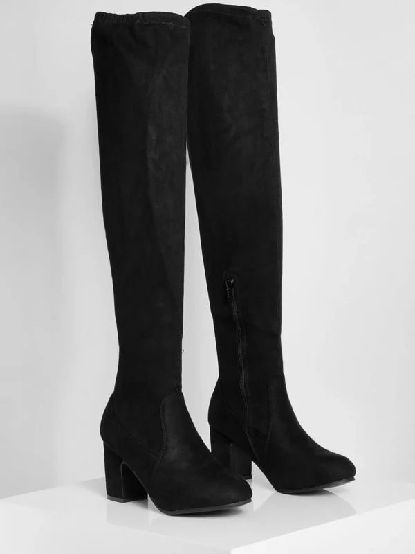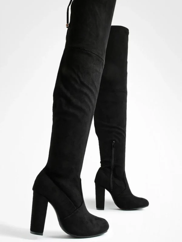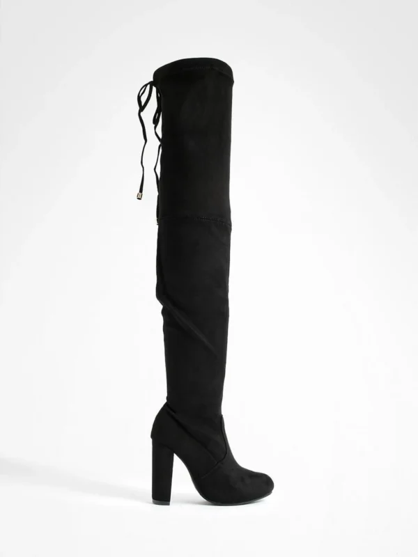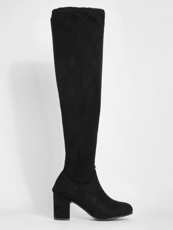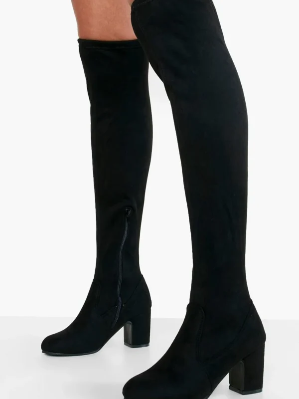 BOOHOO Wide Fit Faux Suede Block Heel Stretch Over The Knee Boots