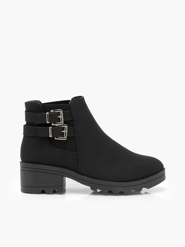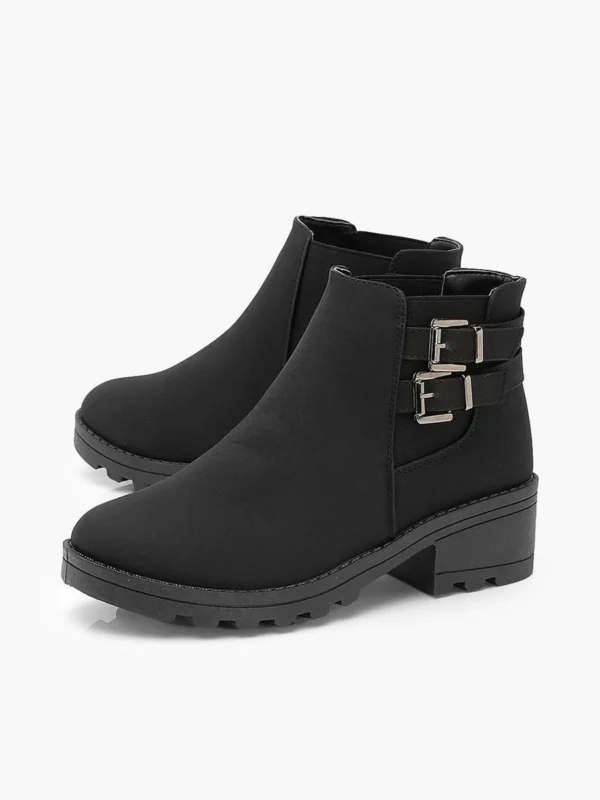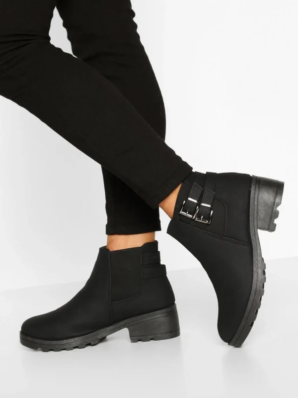 BOOHOO Wide Fit Faux Suede Buckle Detail Block Heel Chelsea Boots
