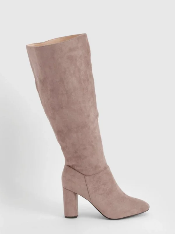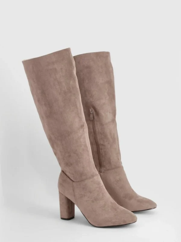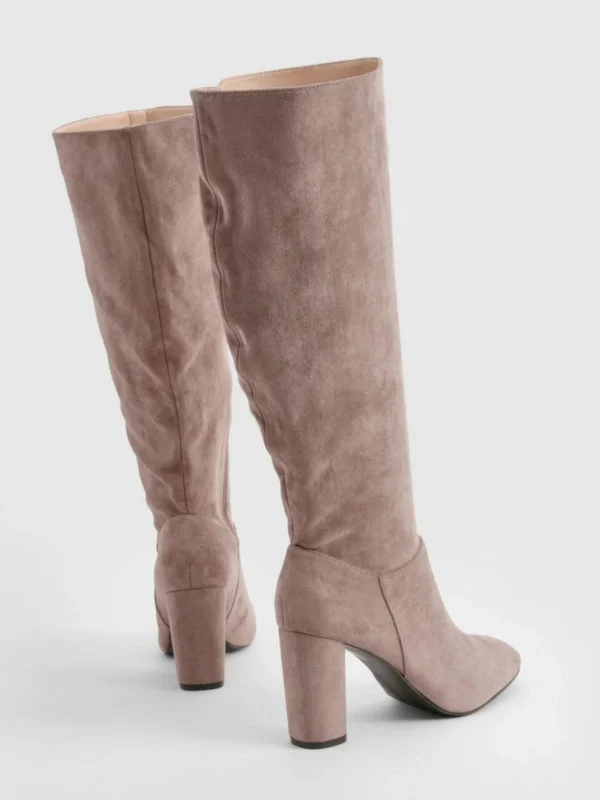 BOOHOO Wide Fit Faux Suede Block Heel Knee High Boots