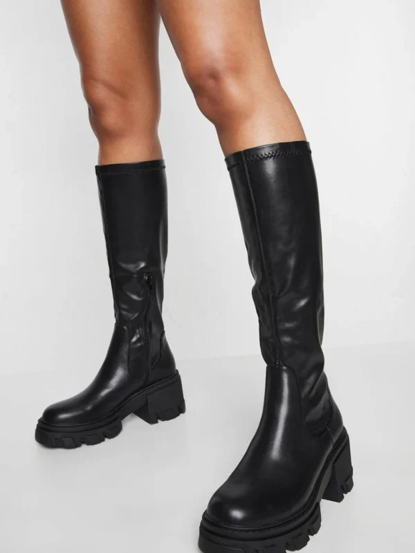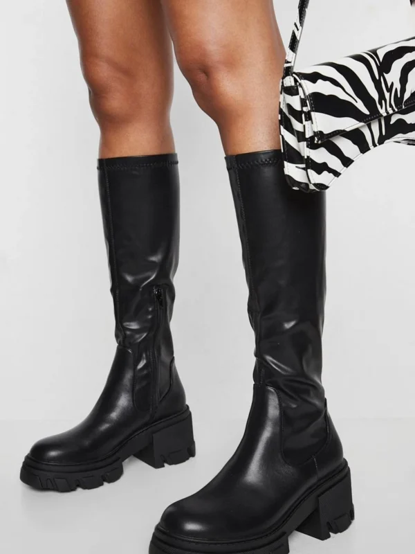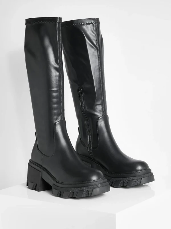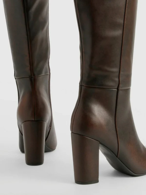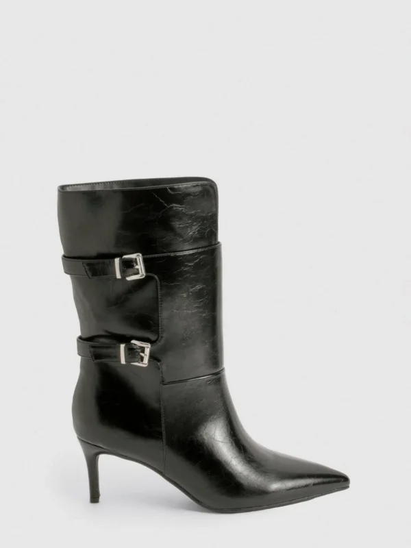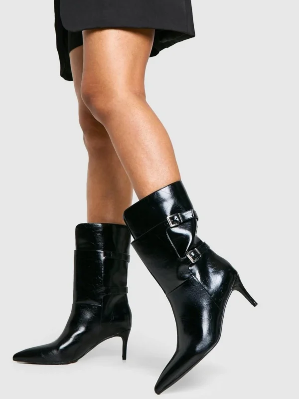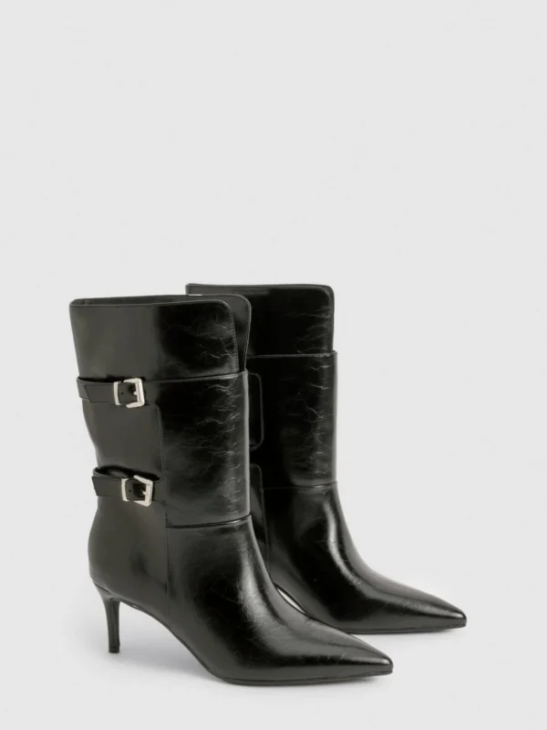 BOOHOO Buckle Detail Stiletto Calf High Boots