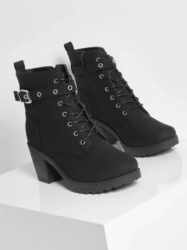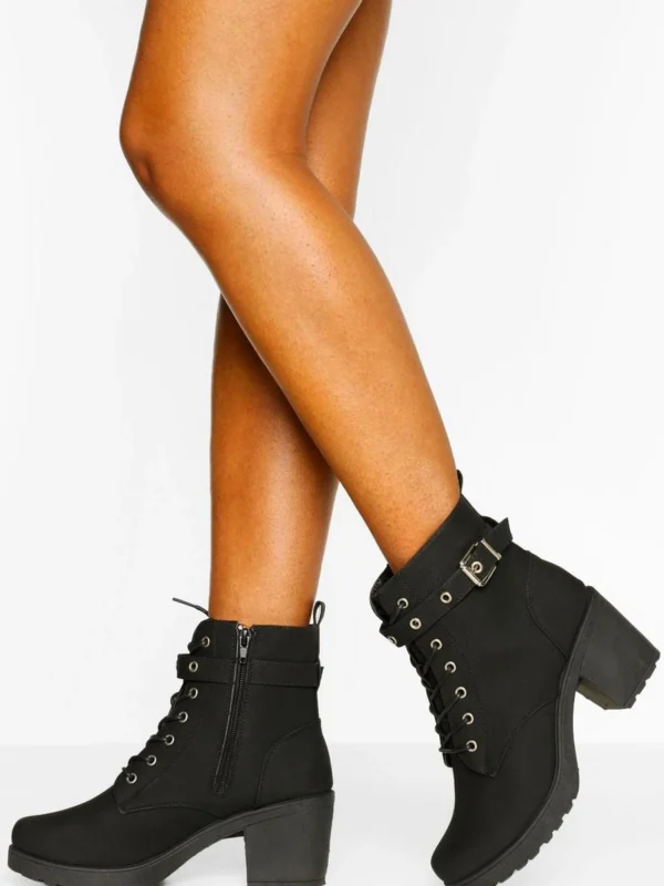 BOOHOO Buckle Lace Up Chunky Hiker Boots