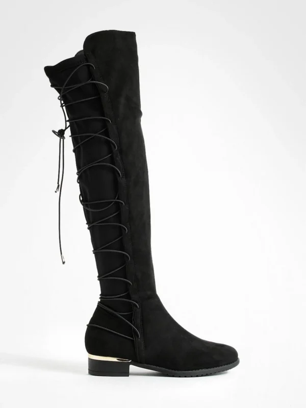 BOOHOO Bungee Lace Back Faux Suede Knee High Boots