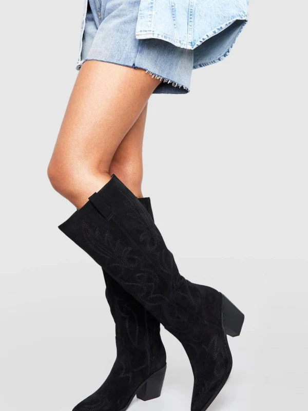 BOOHOO Casual Faux Suede Knee High Western Cowboy Boots