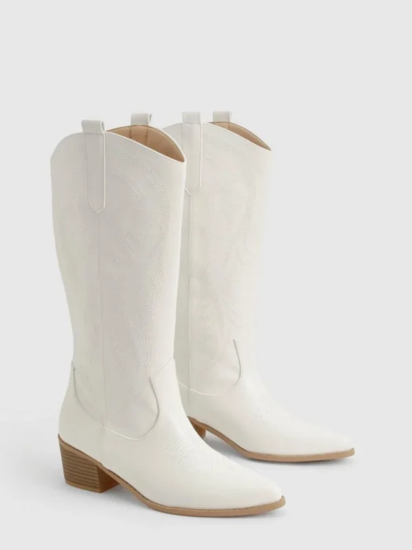 BOOHOO Calf Detail Embroidered Western Cowboy Boots