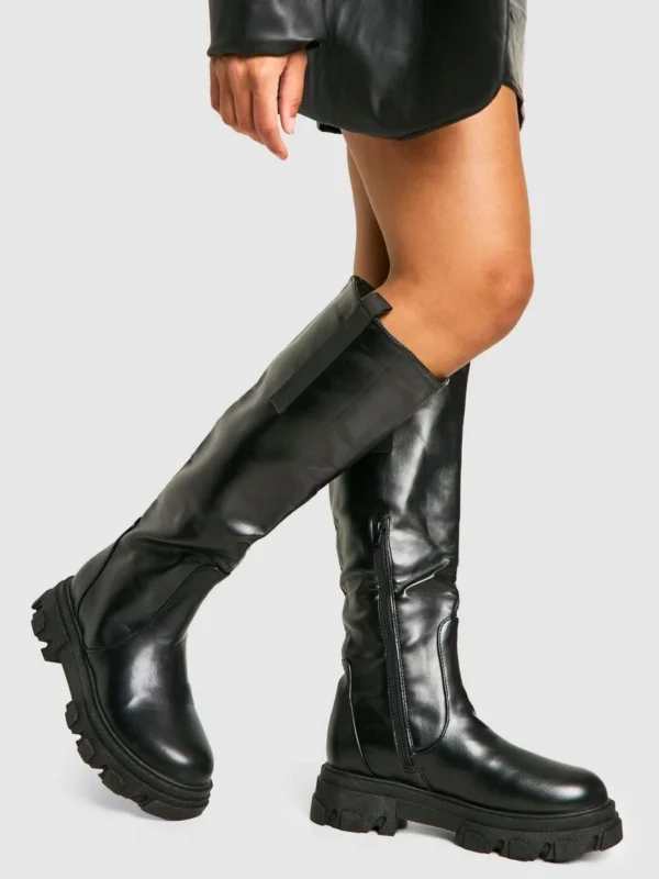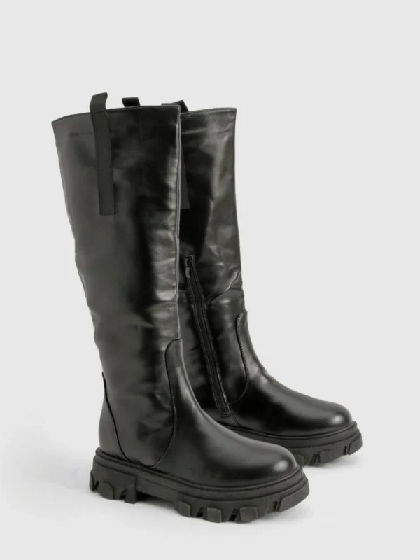 BOOHOO Cleated Sole Calf High Chelsea Boots