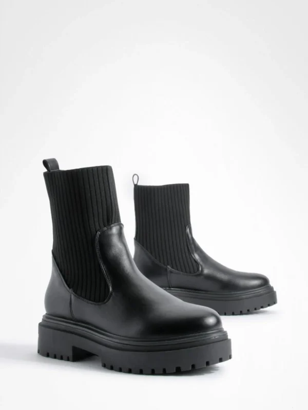 BOOHOO Chunky Sole Knitted Chelsea Boots