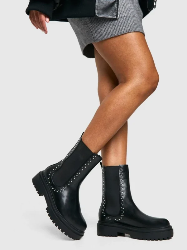 BOOHOO Chunky Stud Detail Chelsea Boots