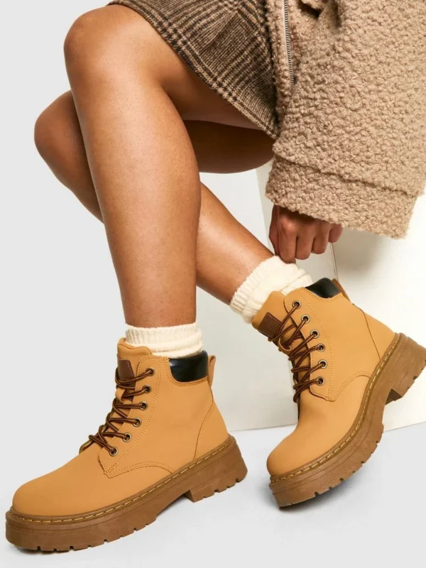 BOOHOO Chunky Sole Lace Up Hiker Boots
