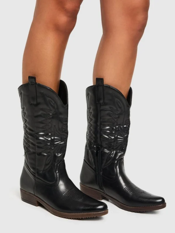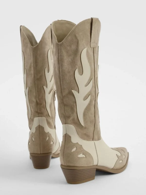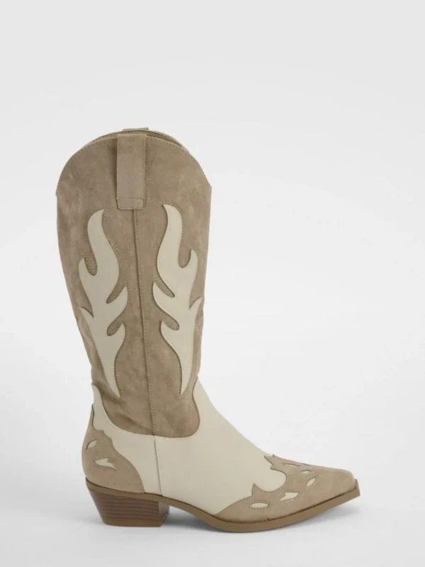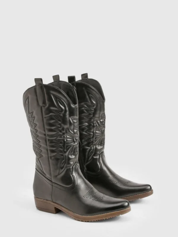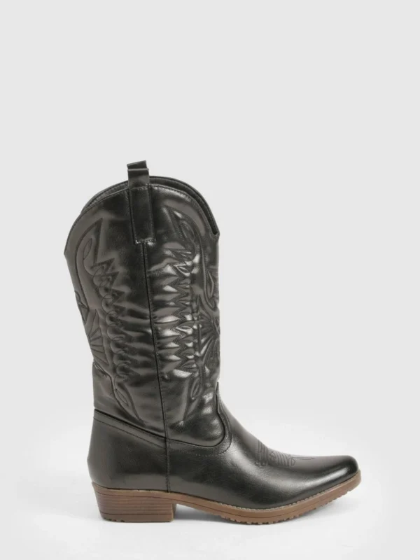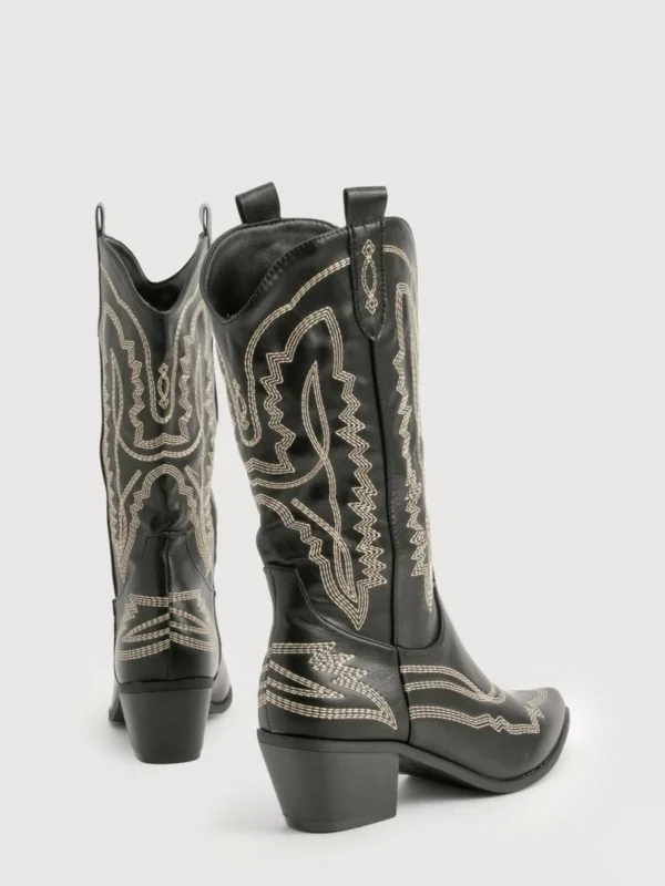 BOOHOO Contrast Stitching Western Cowboy Boots