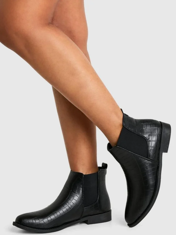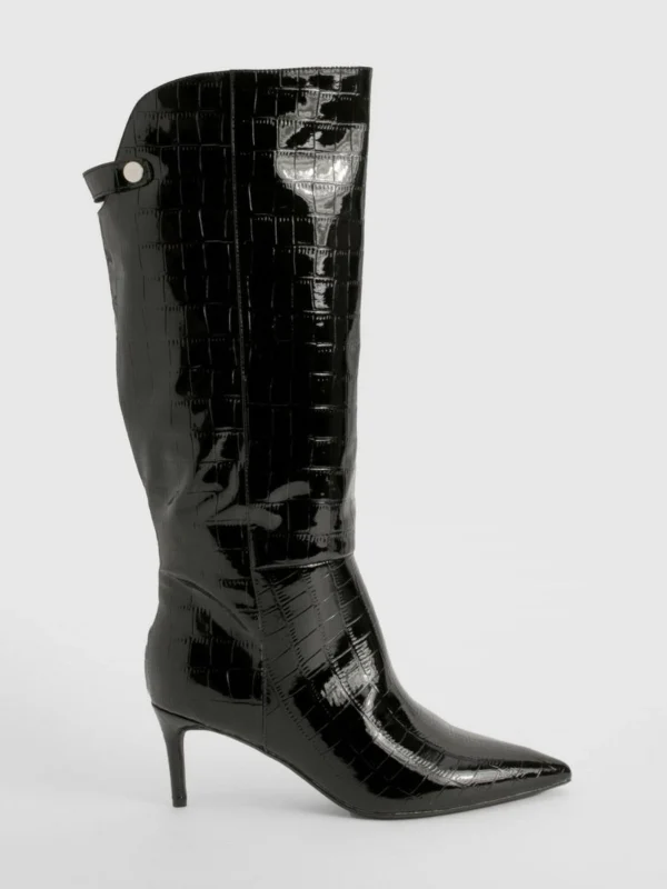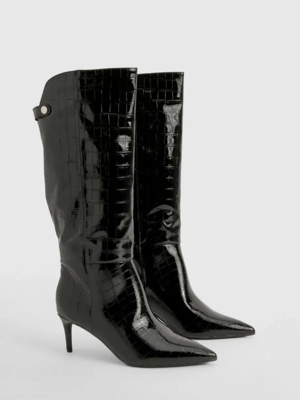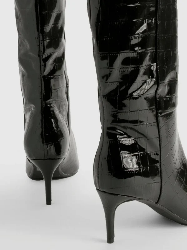 BOOHOO Croc Curved Stiletto Knee High Boots