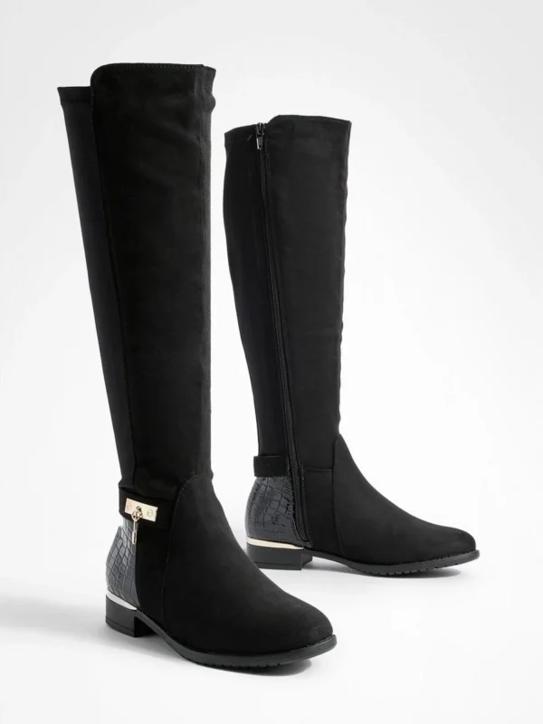 BOOHOO Croc Flat Faux Suede Knee High Boots