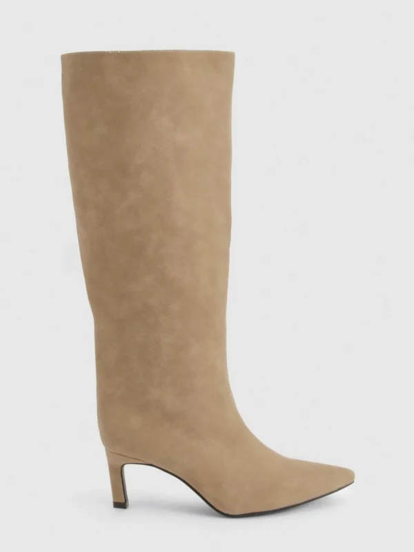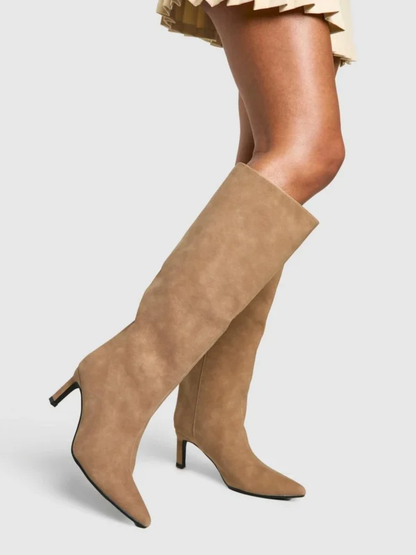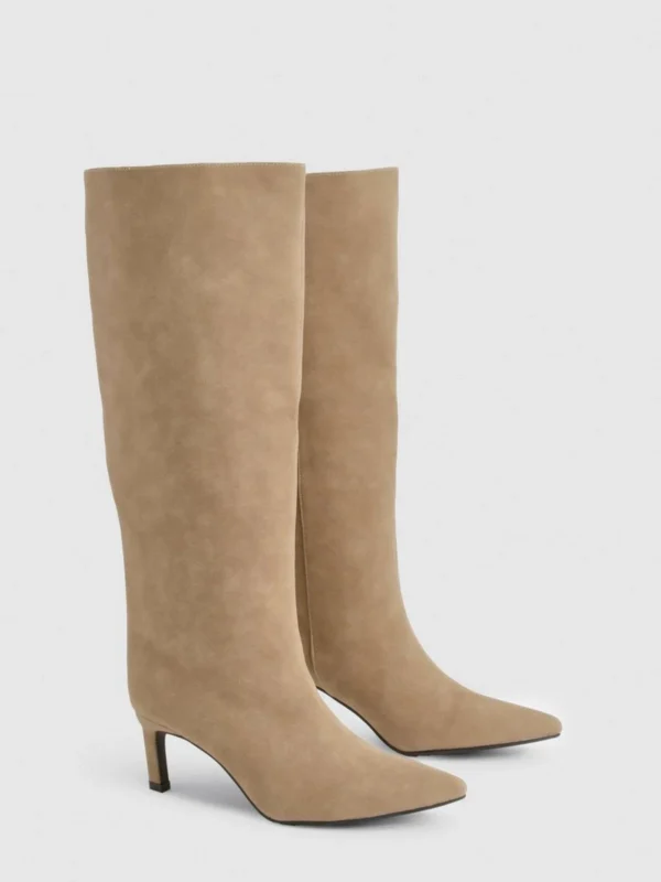 BOOHOO Column Nubuck Low Heel Knee High Boots