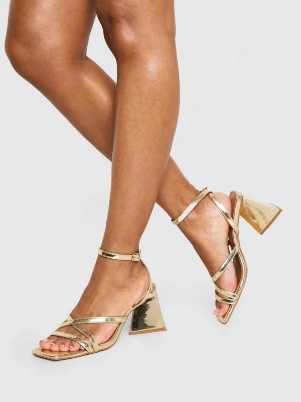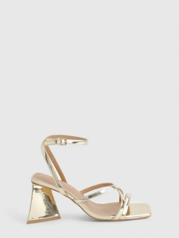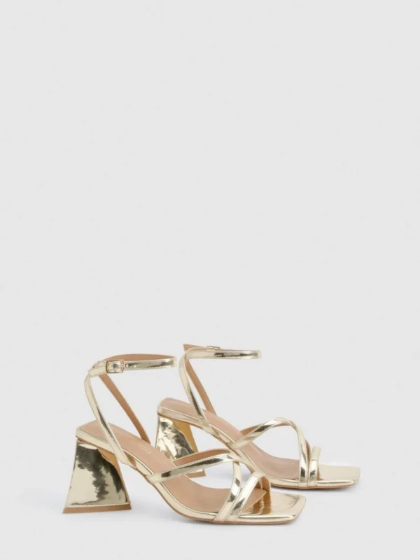 BOOHOO Metallic Flared Heel Crossover Sandals