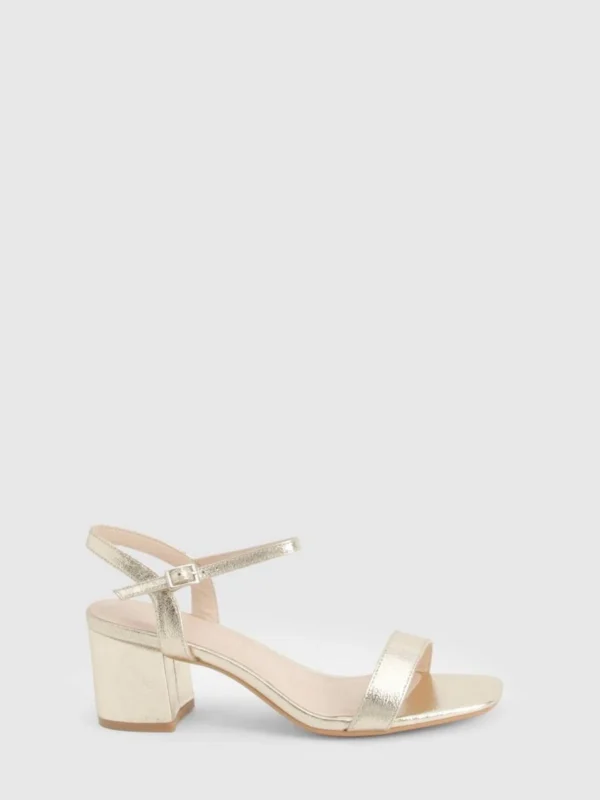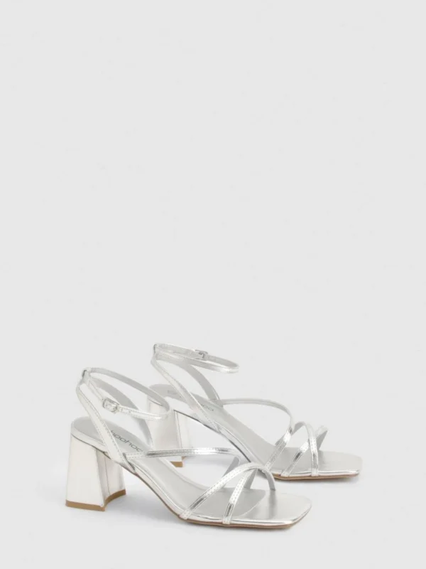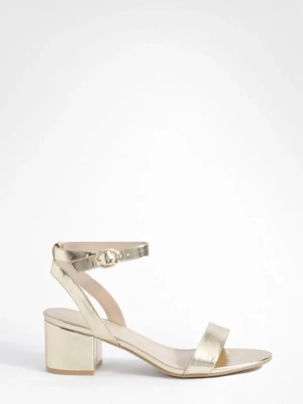 BOOHOO Metallic Mid Block Heel Strappy Heels