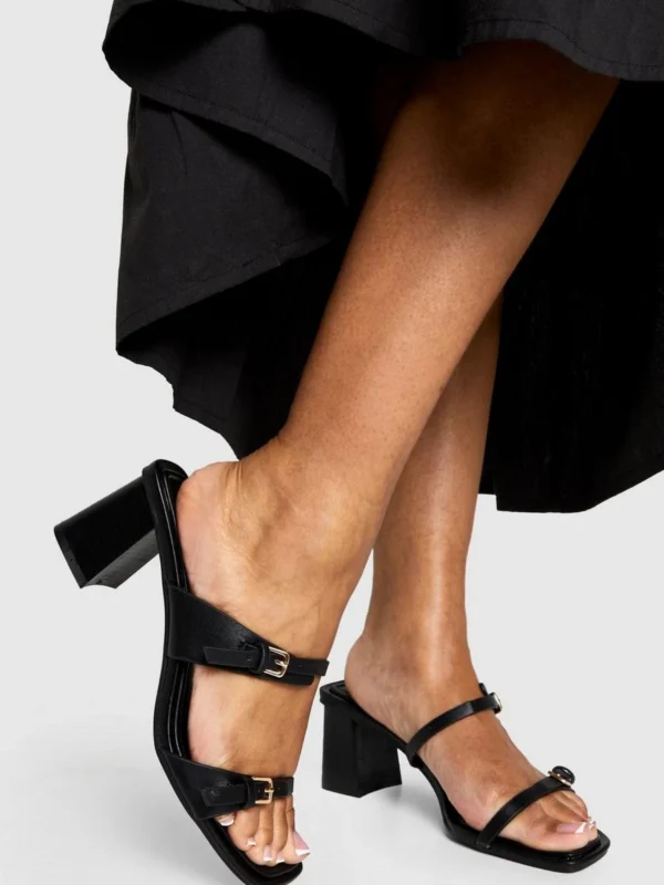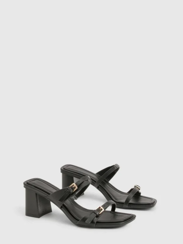 BOOHOO Buckle Double Strap Heeled Mules