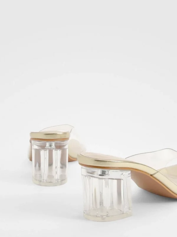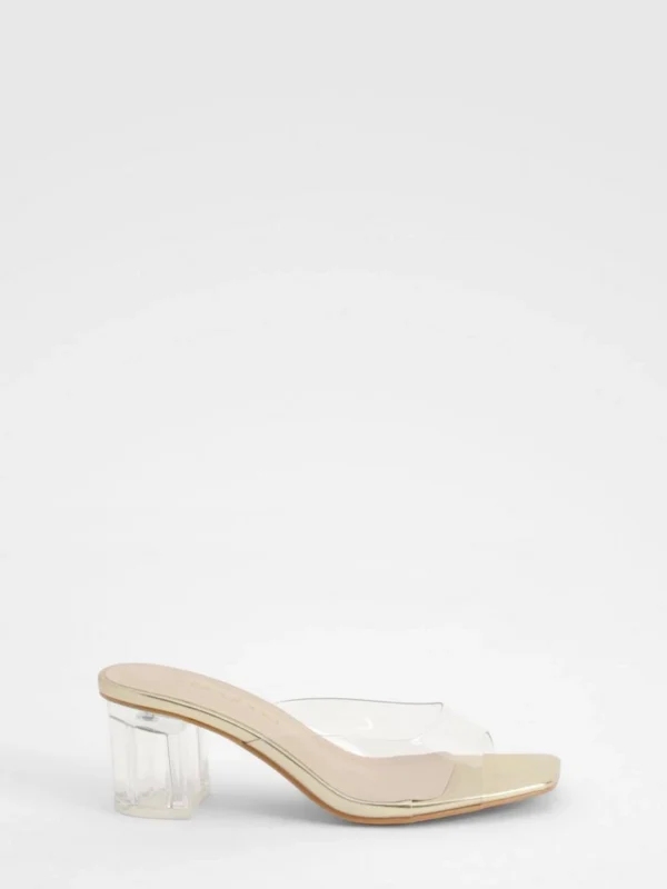 BOOHOO Clear Block Heeled Mules
