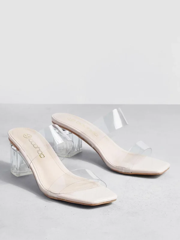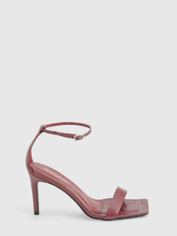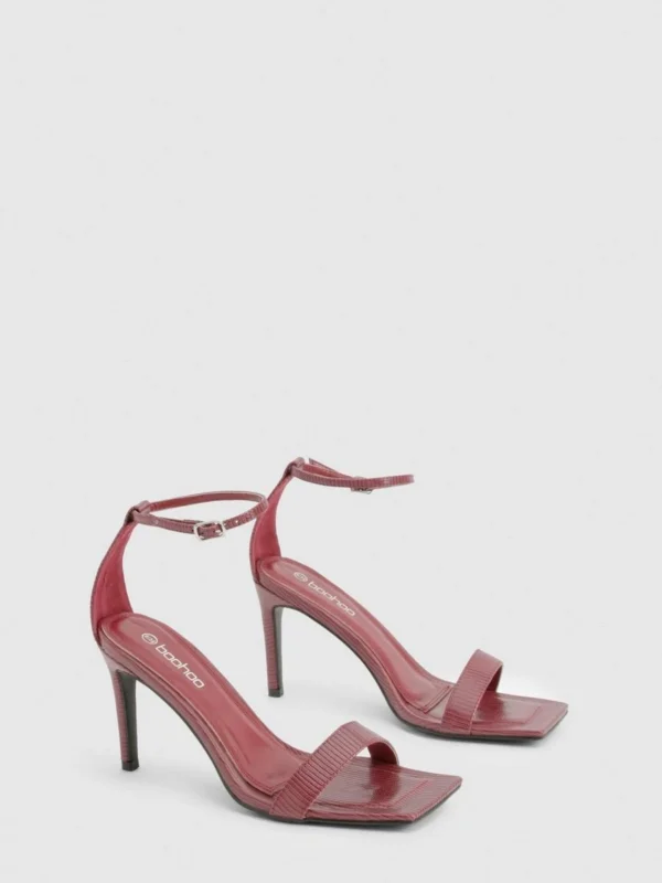 BOOHOO Croc Square Toe Mid Stiletto Heels