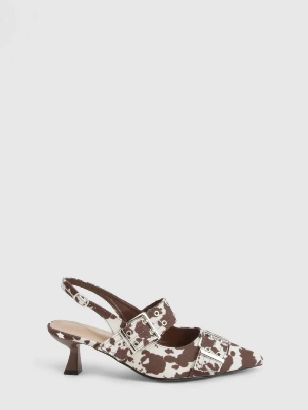 BOOHOO Cow Print Buckle Detail Faux Pony Skin Kitten Heels