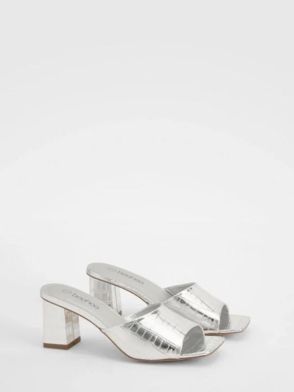 BOOHOO Croc Metallic Low Block Heeled Mule