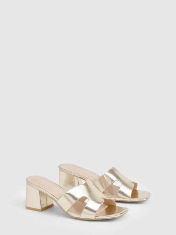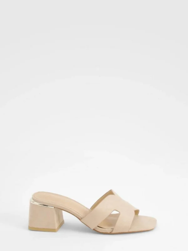 BOOHOO Cut Out Low Block Heeled Mules