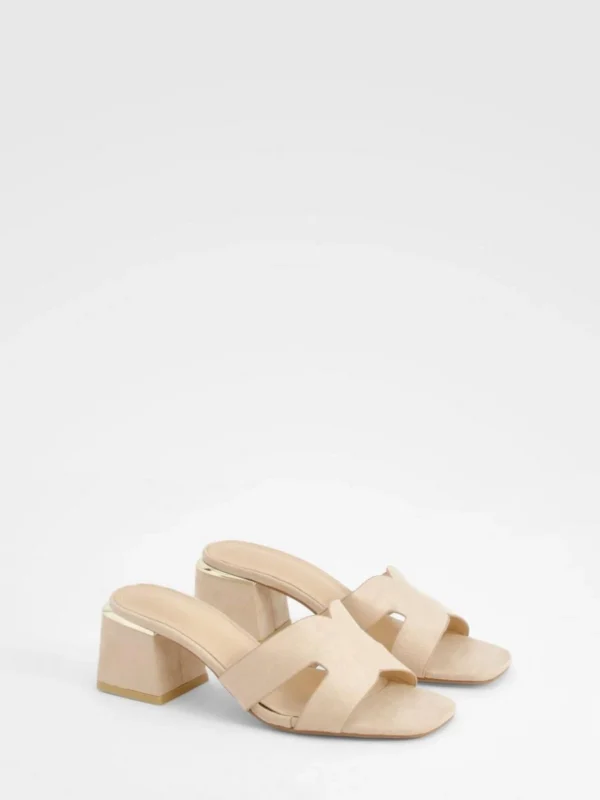 BOOHOO Cut Out Block Heeled Mules