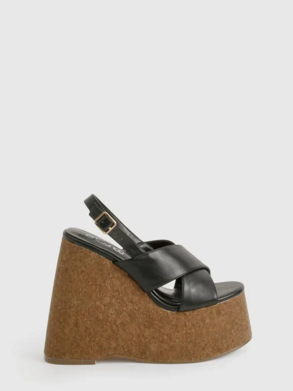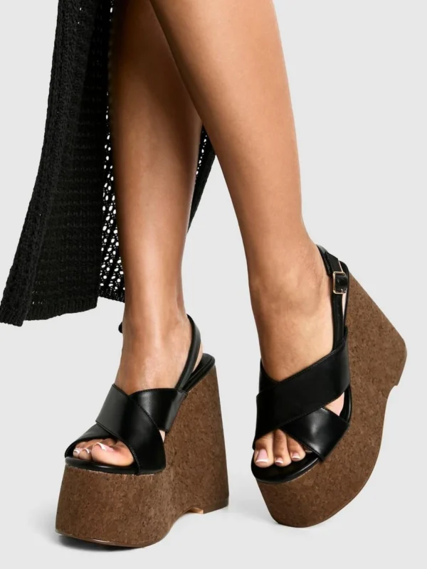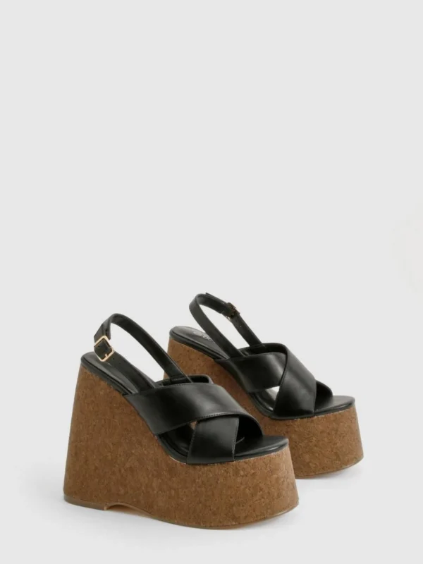 BOOHOO Crossover Cork Detail Platform Wedges
