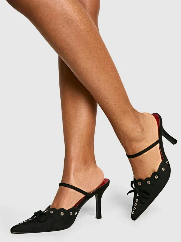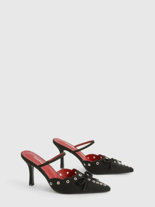 BOOHOO Eyelet Bow Stiletto Court Heels