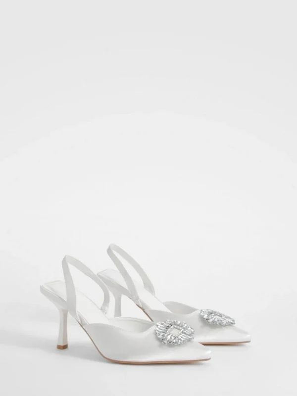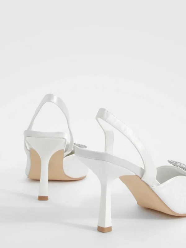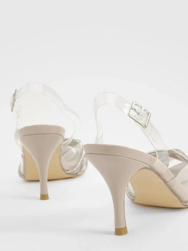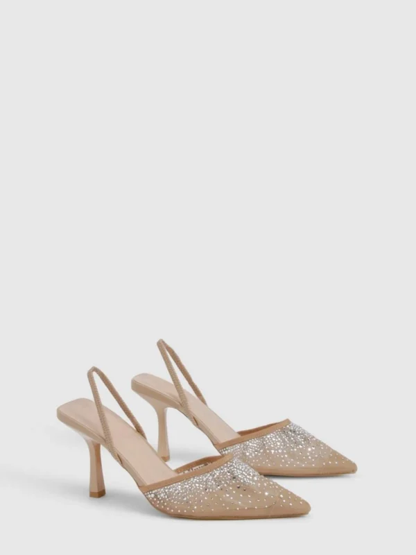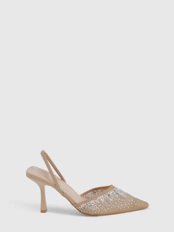 BOOHOO Embellished Mesh Detail Slingback Court Shoes