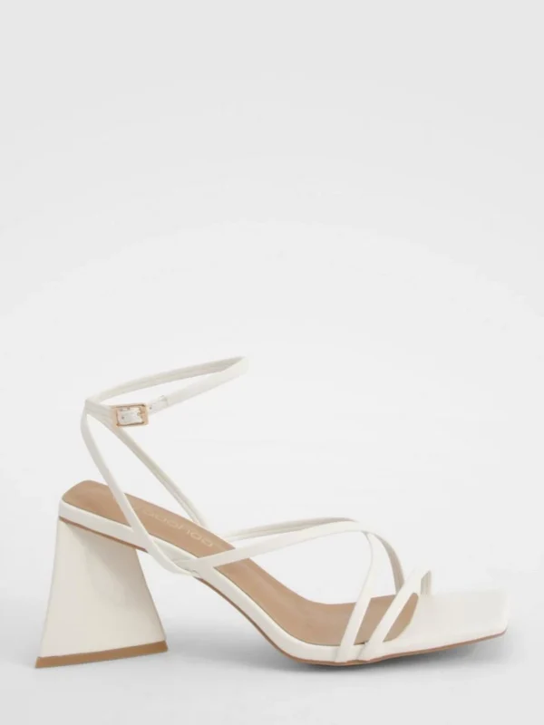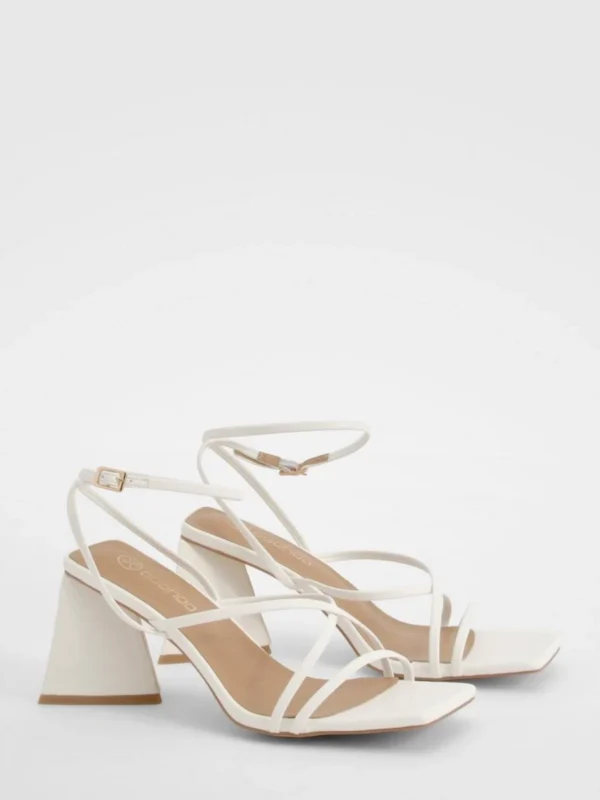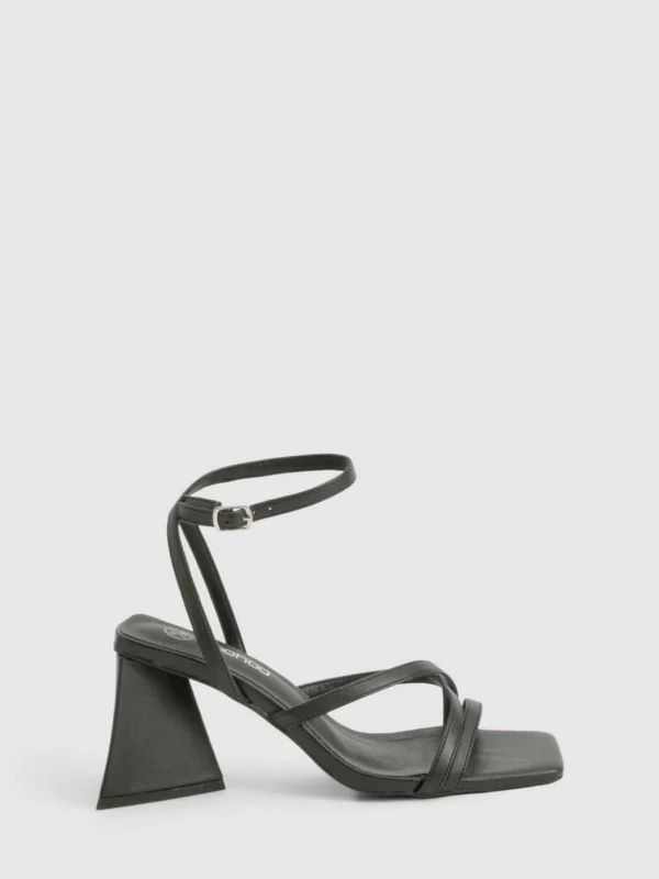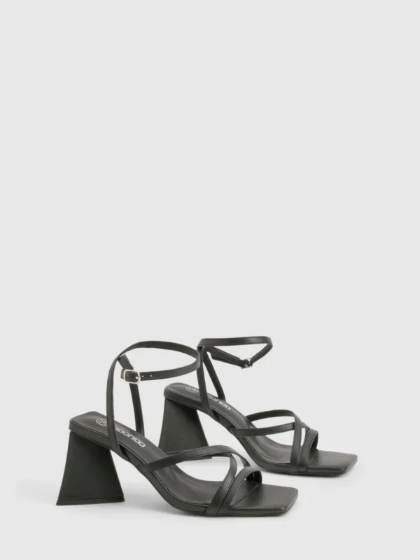 BOOHOO Flared Heel Patent Cross Strap Heeled Sandals