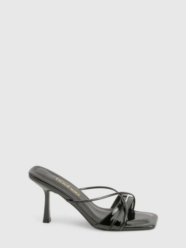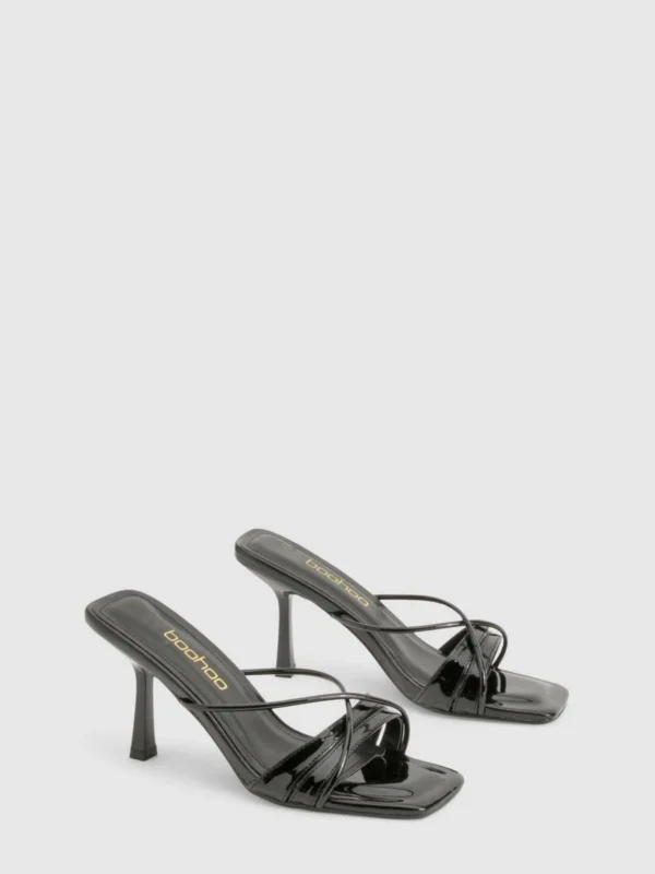 BOOHOO Glossy Crossover Strap Heeled Mule