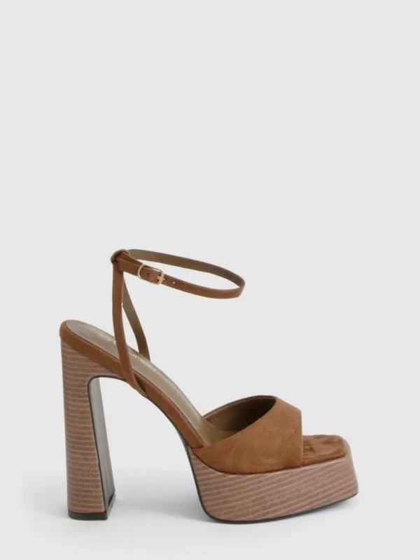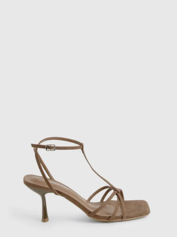 BOOHOO Faux Suede Knot Detail T Bar Mid Height Sandals