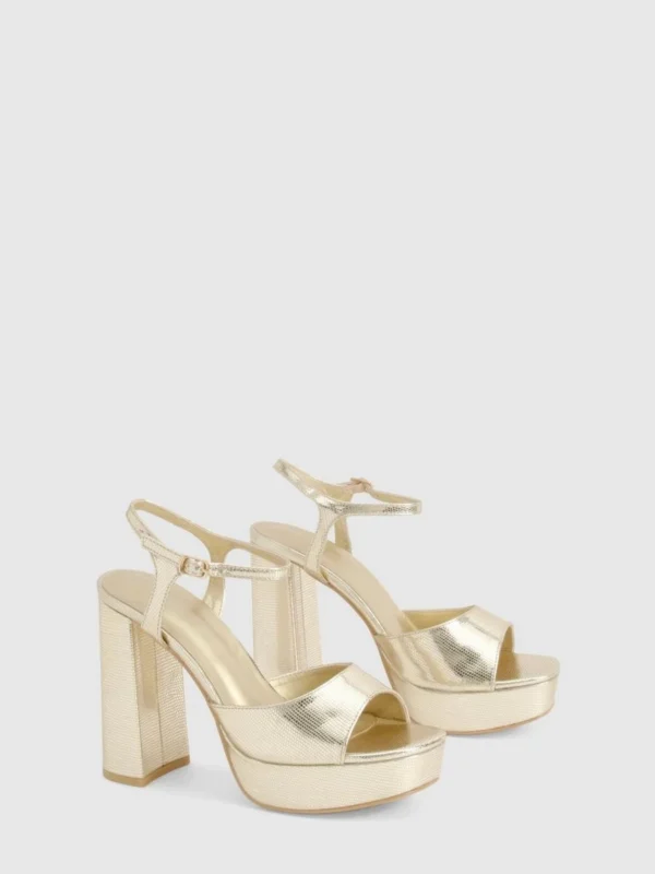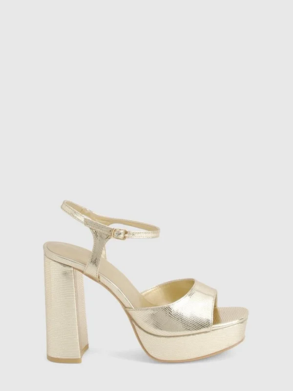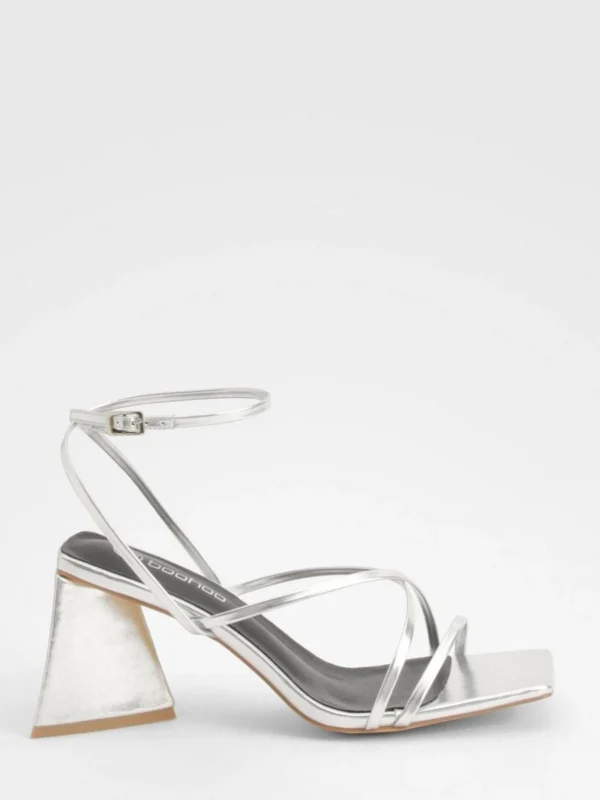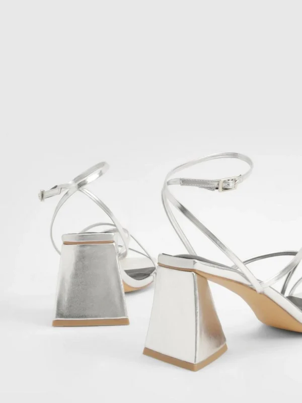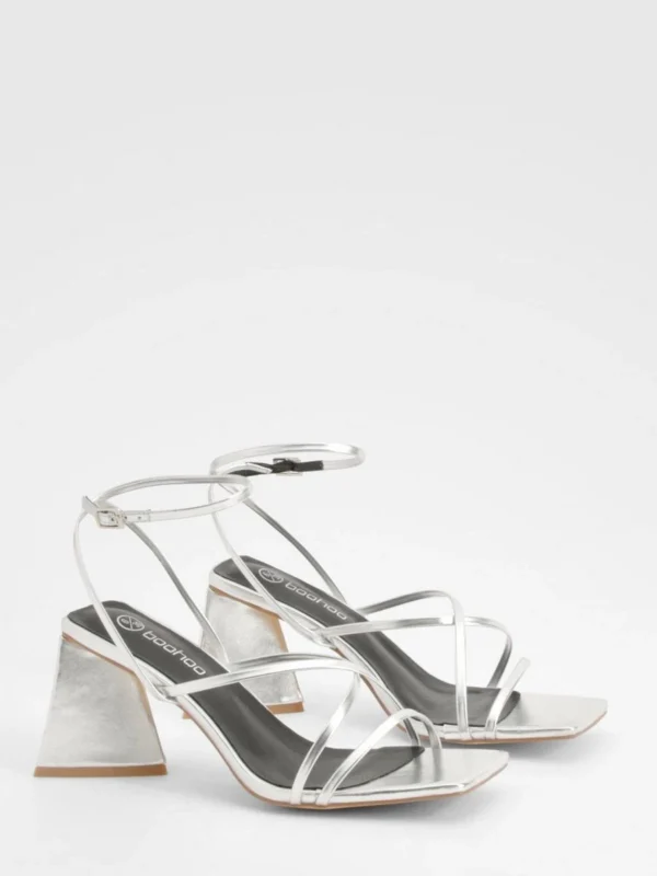 BOOHOO Flared Heel Metallic Cross Strap Heeled Sandals