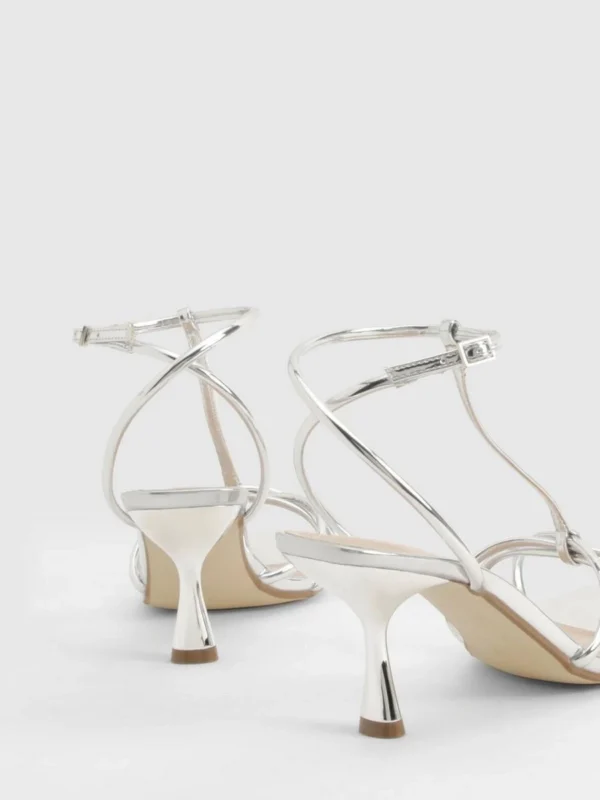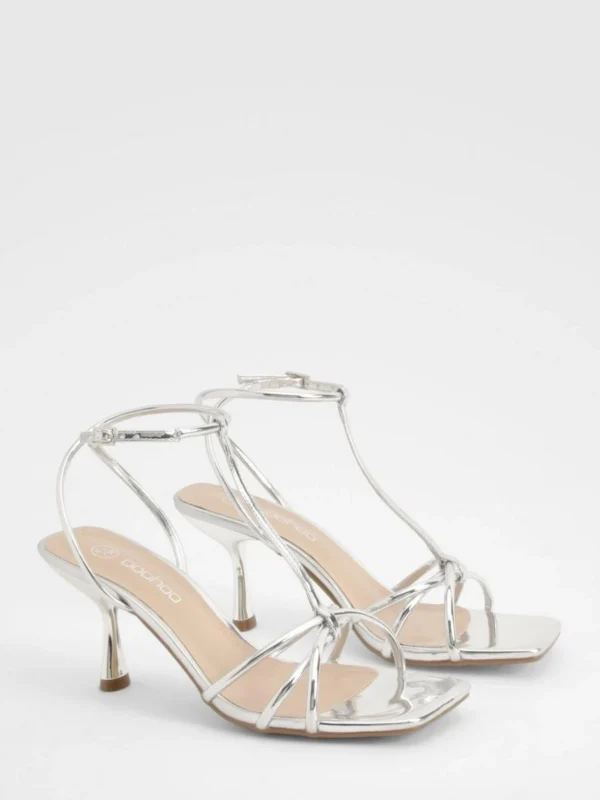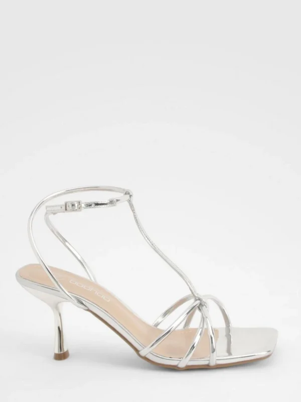 BOOHOO Knot Detail T Bar Mid Height Sandals