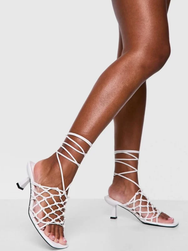 BOOHOO Knotted Caged Low Wrap Up Heels