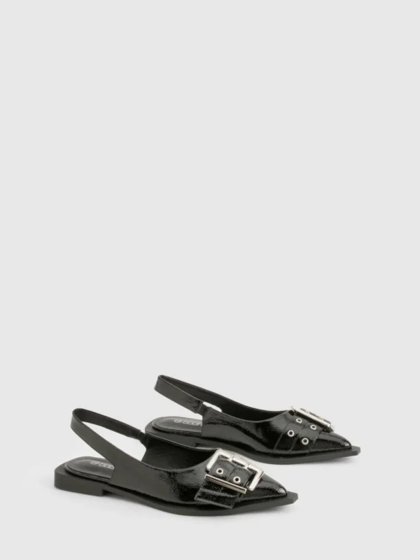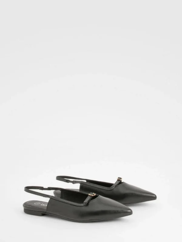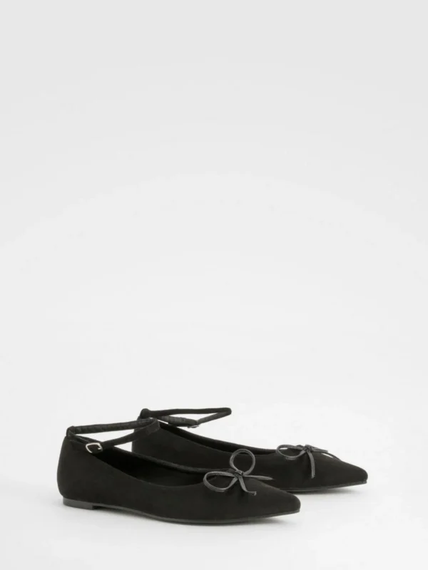 BOOHOO Bow Detail Ankle Strap Pointed Flats