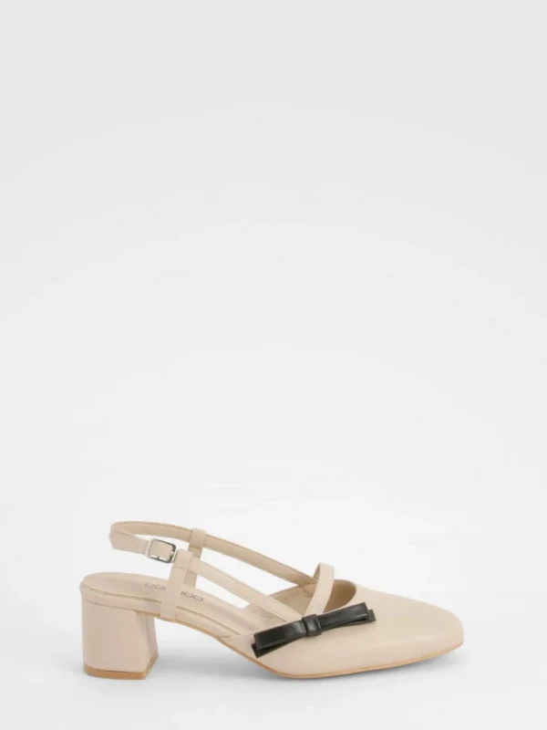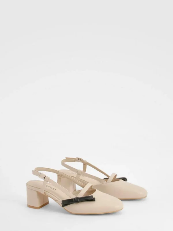 BOOHOO Contrast Bow Detail Low Block Heel Slingback Ballets