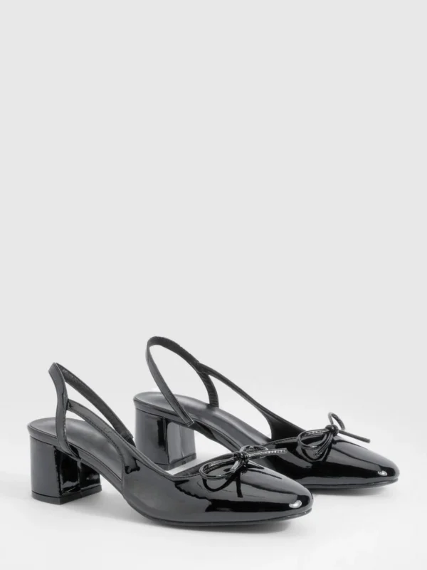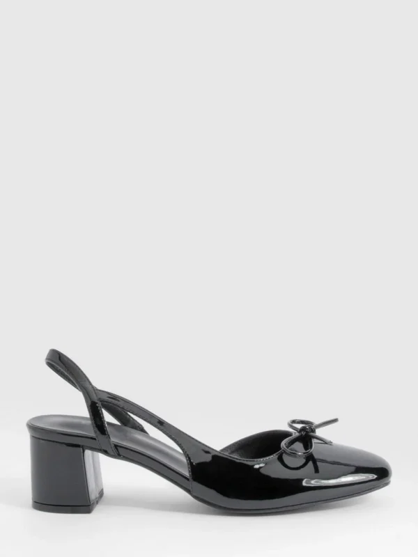 BOOHOO Low Block Heel Slingback Bow Ballets