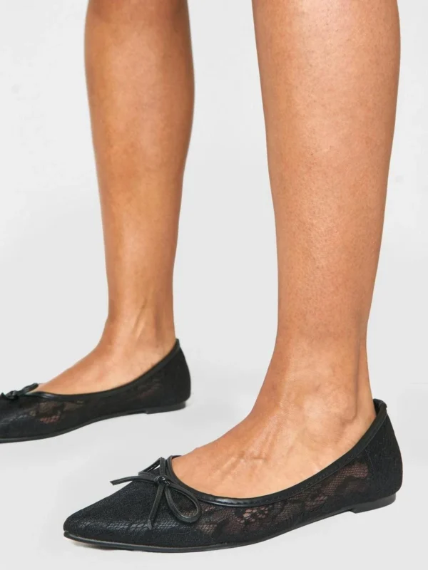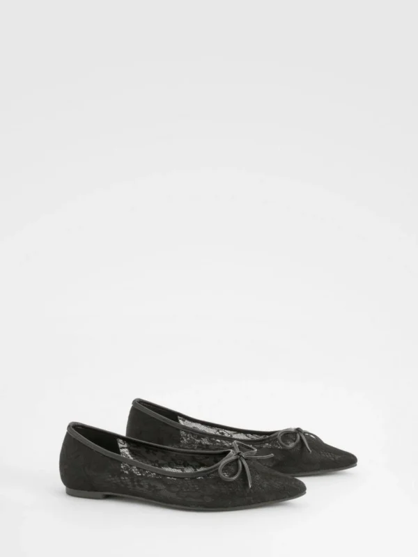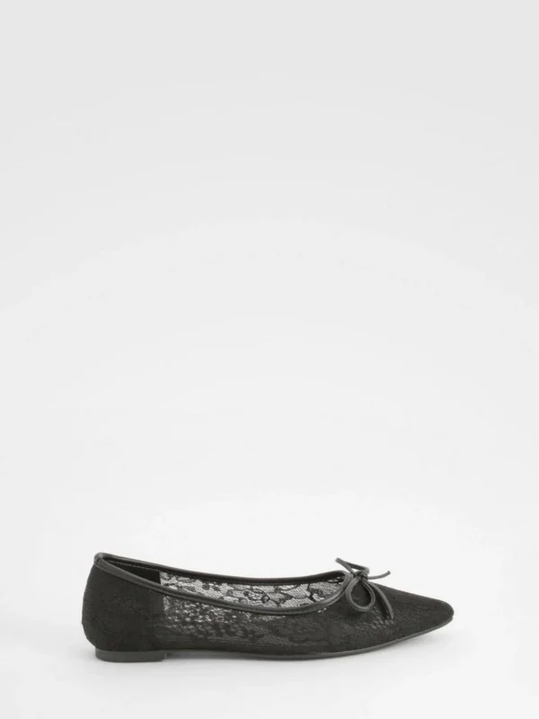 BOOHOO Mesh Bow Detail Pointed Flats