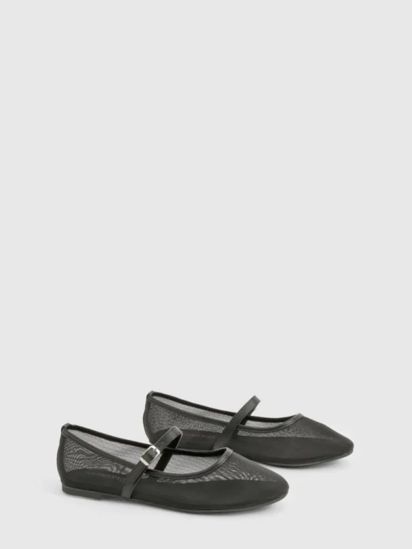 BOOHOO Mesh Strap Detail Ballet Flats