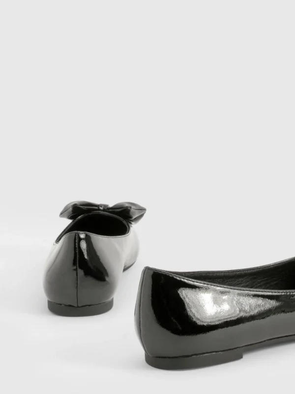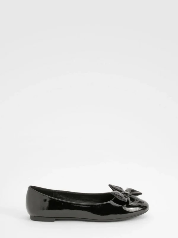 BOOHOO Patent Bow Round Toe Ballerina