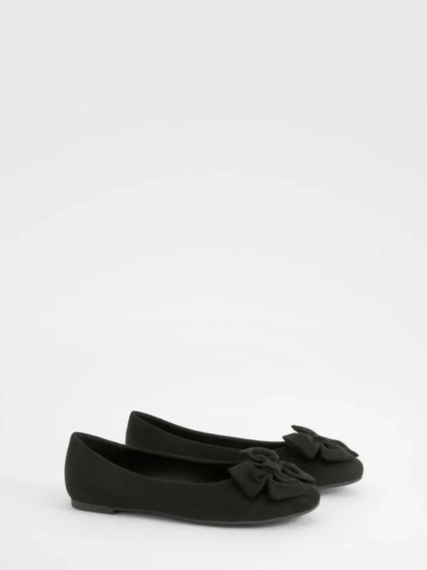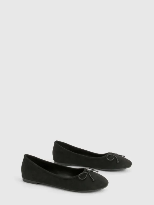 BOOHOO Wide Fit Faux Suede Bow Round Toe Ballerina